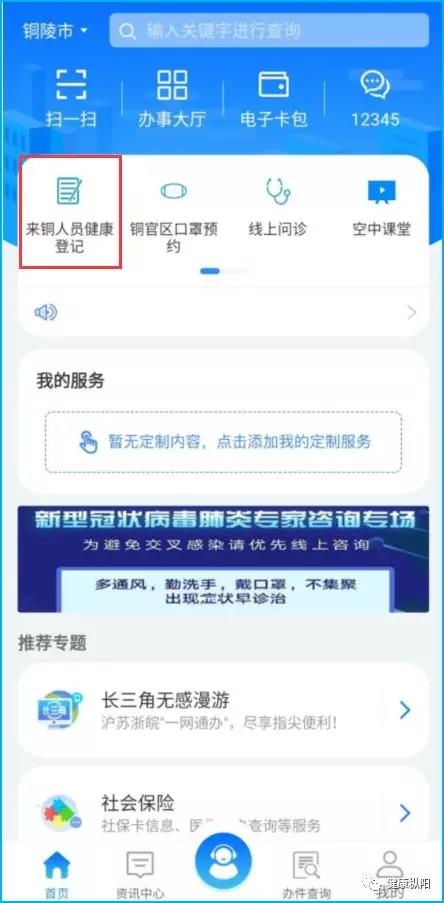 一、皖事通APP登记。下载并注册皖事通后,进入皖事通APP,点击“来铜人员健康登记”服务,即可填写信息。