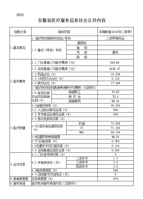 安徽省医疗服务信息社会公开内容(2018年第二季度)