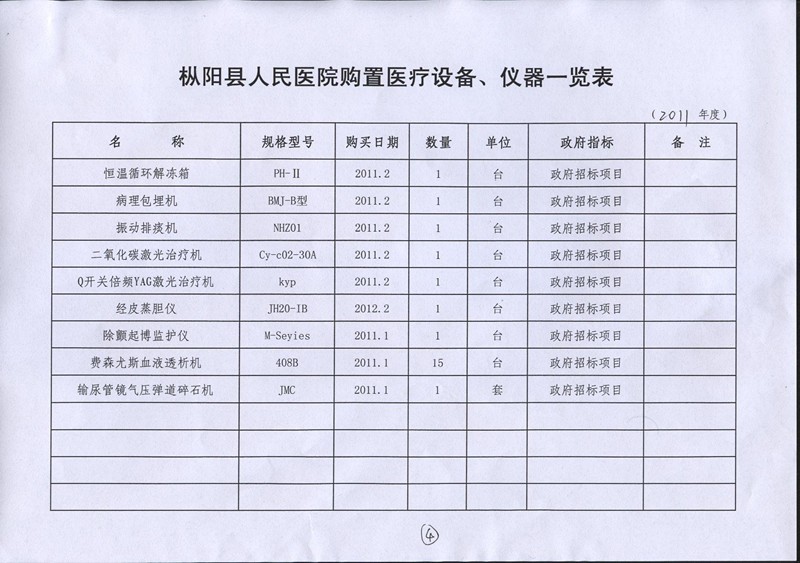 枞阳县医院2011年度购置医疗设备、仪器一览表: